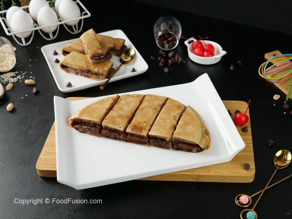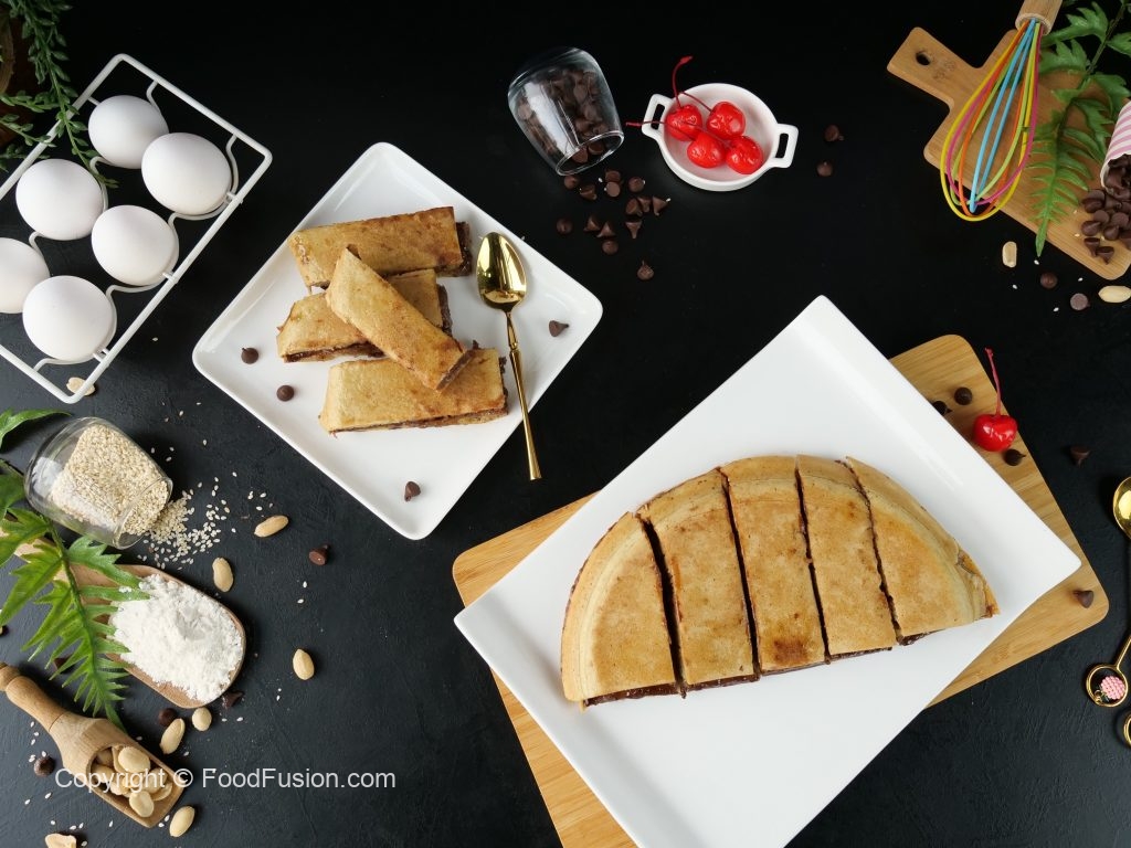 Chocolate Apam Balik Crepes – Famous Malaysian street Food Recipe by Food Fusion. Just like a large pancake cooked from one side and topping from other. So this time add a little twist to your menu. #HappyCookingToYou #FoodFusion