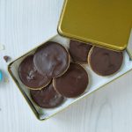 -Spread melted chocolate on one side of biscuits & let it set at room temperature (makes 28).