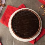 Pour prepared chocolate ganache over walnut salted caramel sauce,spread evenly & let it set in refrigerate for 2 hours.