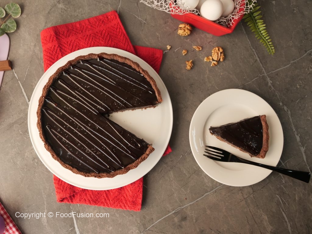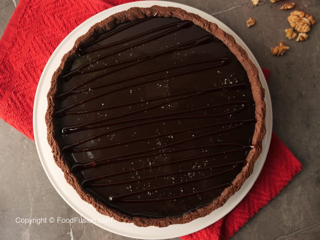 Pour prepared walnut salted caramel sauce over the tart,spread evenly & refrigerate for 30 minutes.