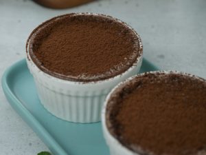 Place ramekins on a baking dish & bake in preheated oven at 200C for 15-16 minutes (makes 4).