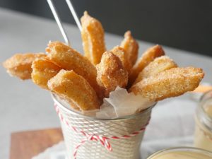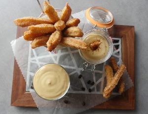 Churros ko coffee+cheeni mixture mein dal ker ache tarhan coat ker lein.