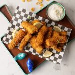 Cornflakes Crusted Finger Fish with Lemon Garlic Mayo