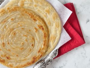 -Add oil/clarified butter, spread on roti, add dry flour.