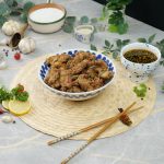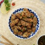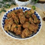 -In a bowl,add potato starch & coat each piece of marinated chicken in potato starch.