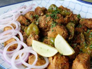 Chicken boneless cubes dal ker ache tarhan mix karein aur 30 minutes kliya marinate ker lein.
