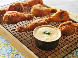 Serve drumsticks with spicy potato sauce.