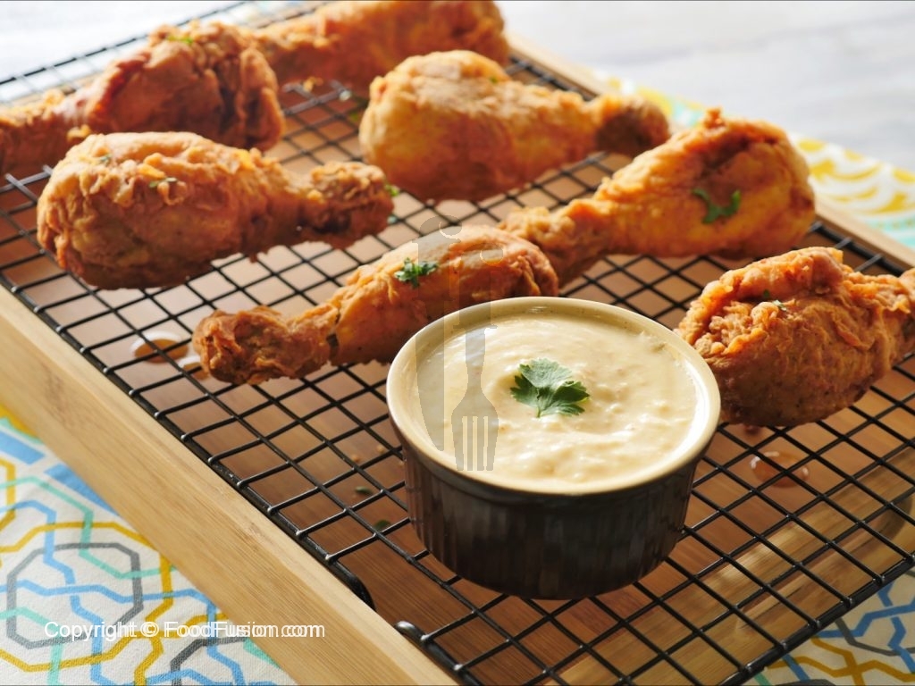 Drumsticks ko spicy potato sauce ka saath serve karein.