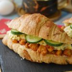Add prepared mayo sauce,chicken tikka cubes,cheese slices,prepared scrambled eggs,cucumber slices & croissant on top (makes 3-4).