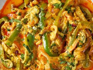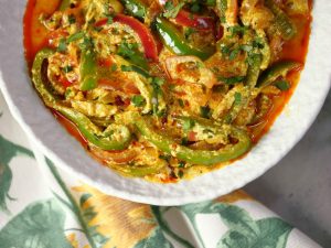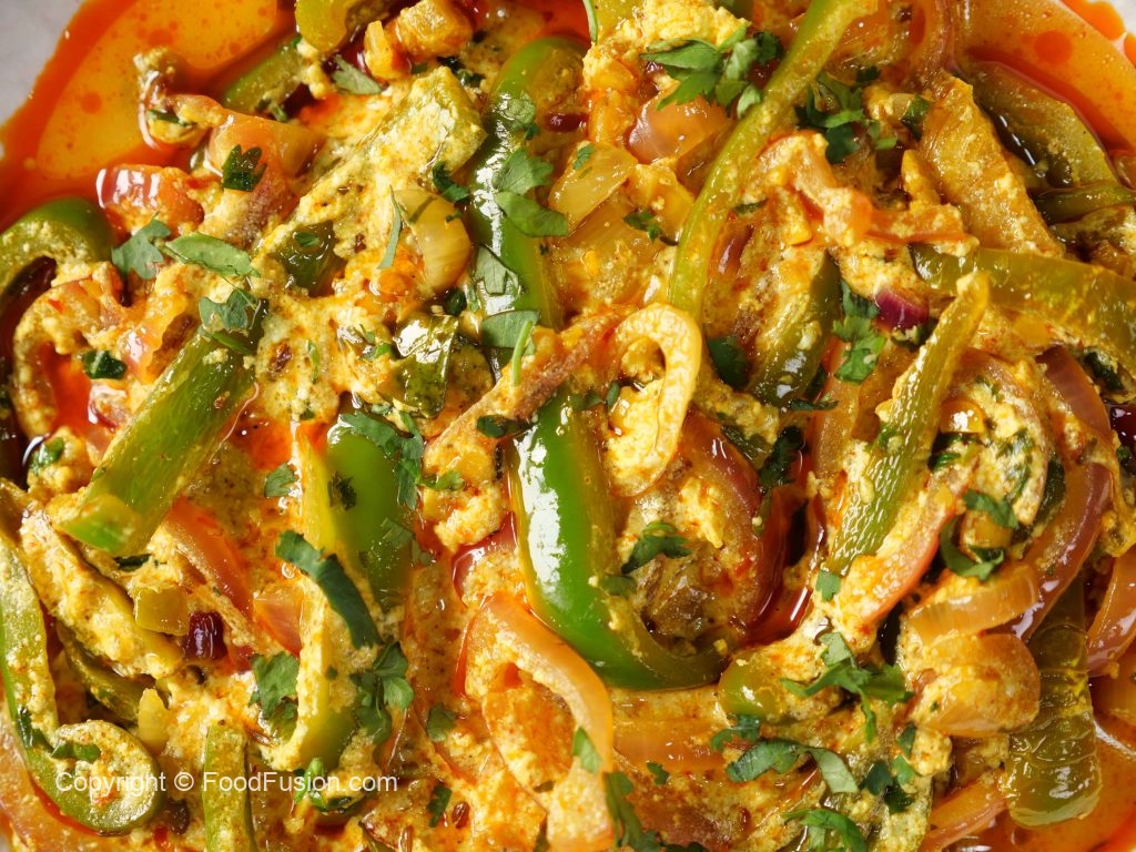 -Pyaz aur Shimla mirch ka mixture dal kar achi tarah mix karein aur darmiyani ancch par 4-5 minutes kliya paka lein.