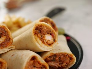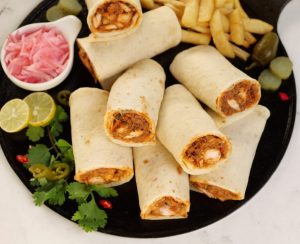 -On shawarma bread,add & spread mayonnaise,add cooked chicken & roll up.