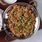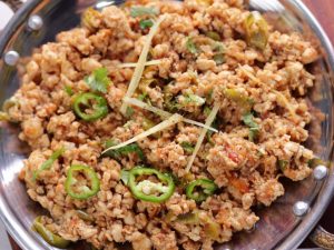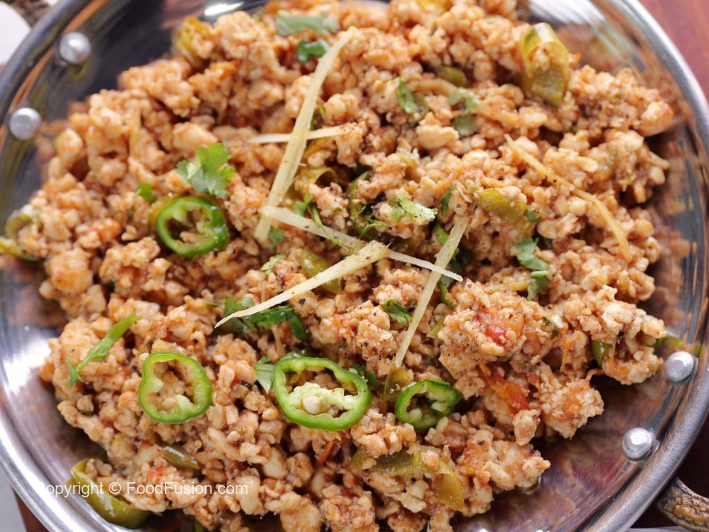 -In a wok,add cooking oil,hand chopped chicken mince & mix well until it changes color & cook on medium flame until it dries up (3-4 minutes).