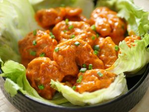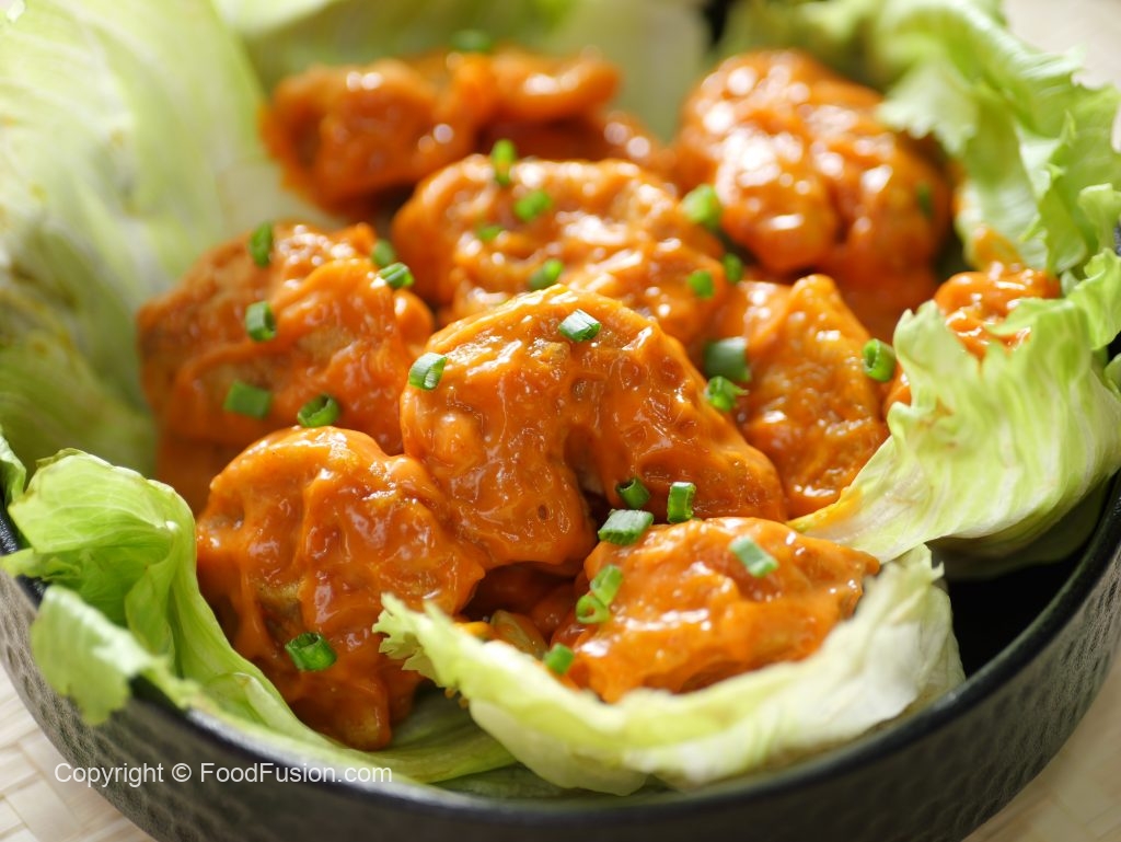 -Serve on iceberg leaves,garnish with sesame seeds & spring onion leaves!
