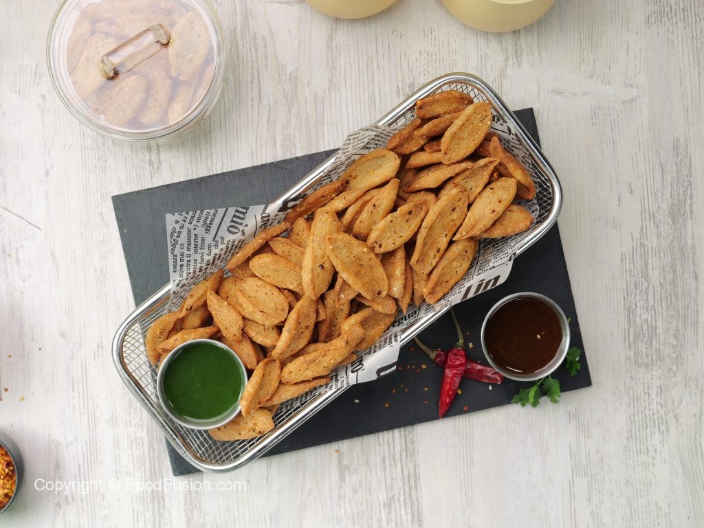 -In a wok,heat cooking oil & fry on low flame until golden brown & crispy.