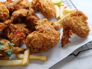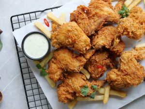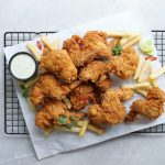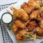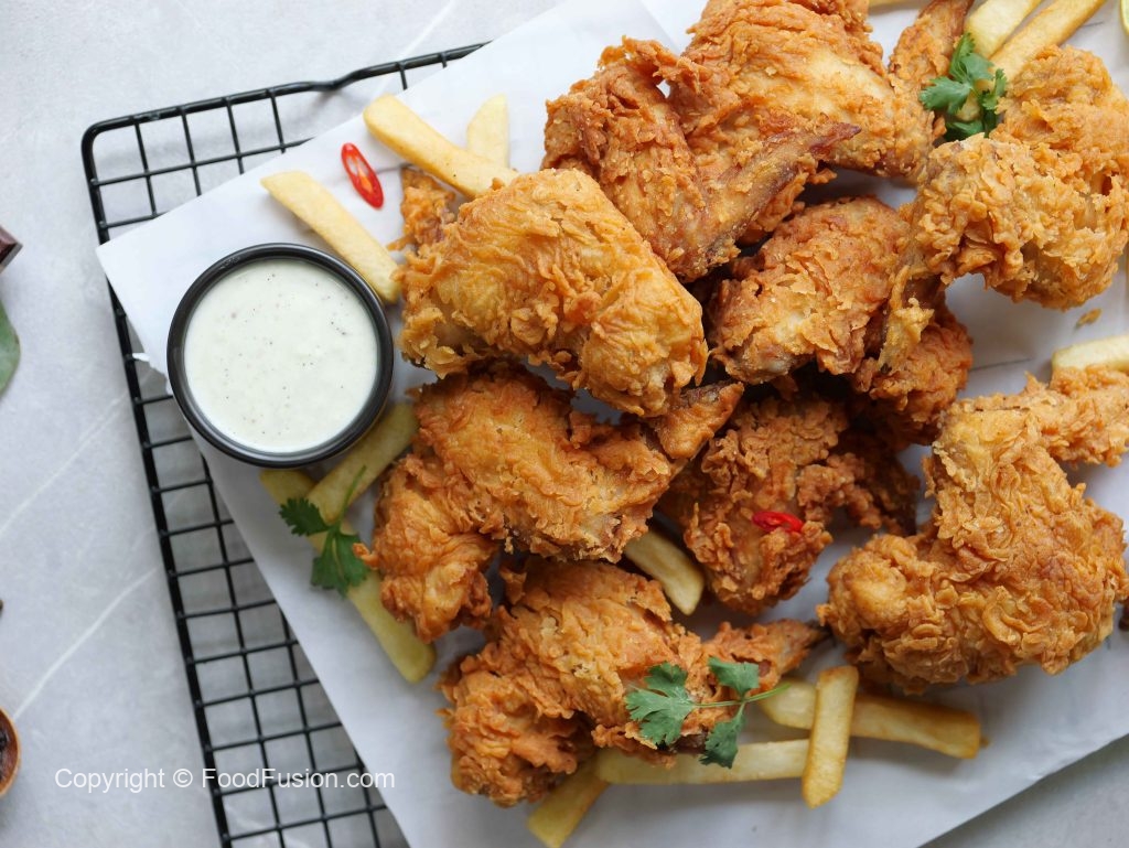 -Crispy fried wings ko fries & sauce ka saath serve karein!