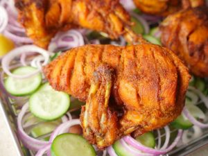 Chicken dal ker ache tarhan rub karein aur dhak ker 2-3 hours ya overnight kliya refrigerator mein marinate ker lein.