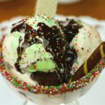 For glass decoration,take ice cream bowl, dip into melted chocolate and coat with rainbow sprinkles.