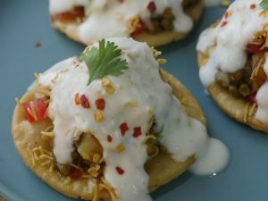 -In a bowl, add prepared dahi bhallay break them with spoon, sprinkle Dahi bada masala, papri, pour creamy meethi dahi, prepared imli chutney & serve!