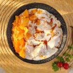 In a bowl, add yogurt, olpers cream, milk, pink salt, sugar powder, whisk until smooth & well combined, meethi dahi is ready! set aside.
