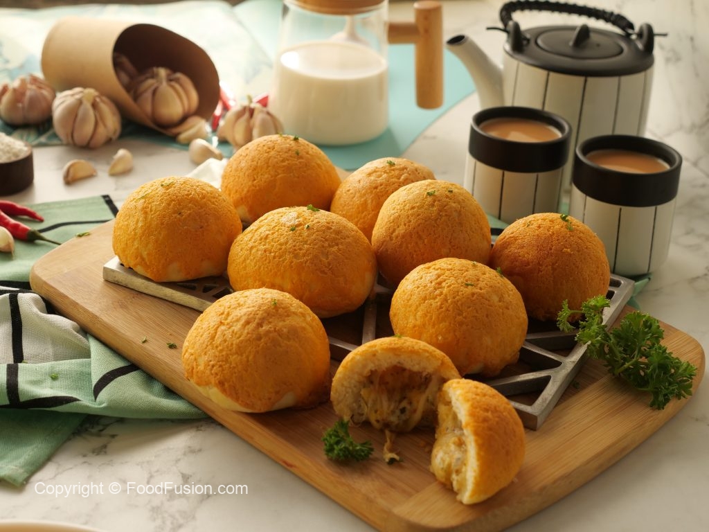 -Garlic butter topping ko buns ka upper circles mein laga lein (makes 16-18).