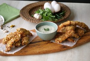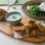 Serve chicken tenders with mayo yogurt sauce!