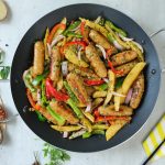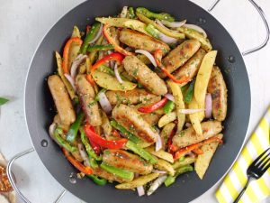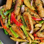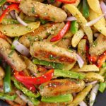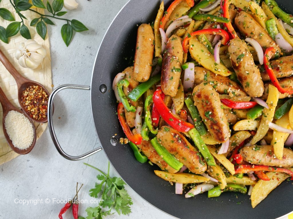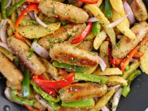 -Add red bell pepper,capsicum,onion,fried potato,fried kababs & give it a good mix.