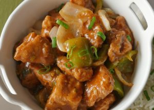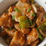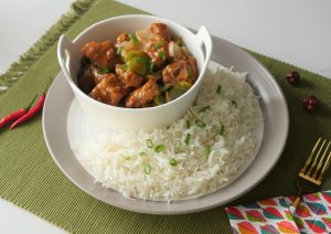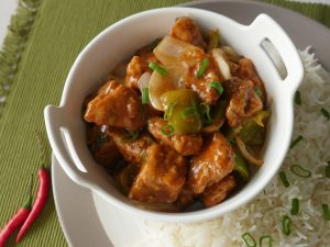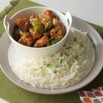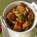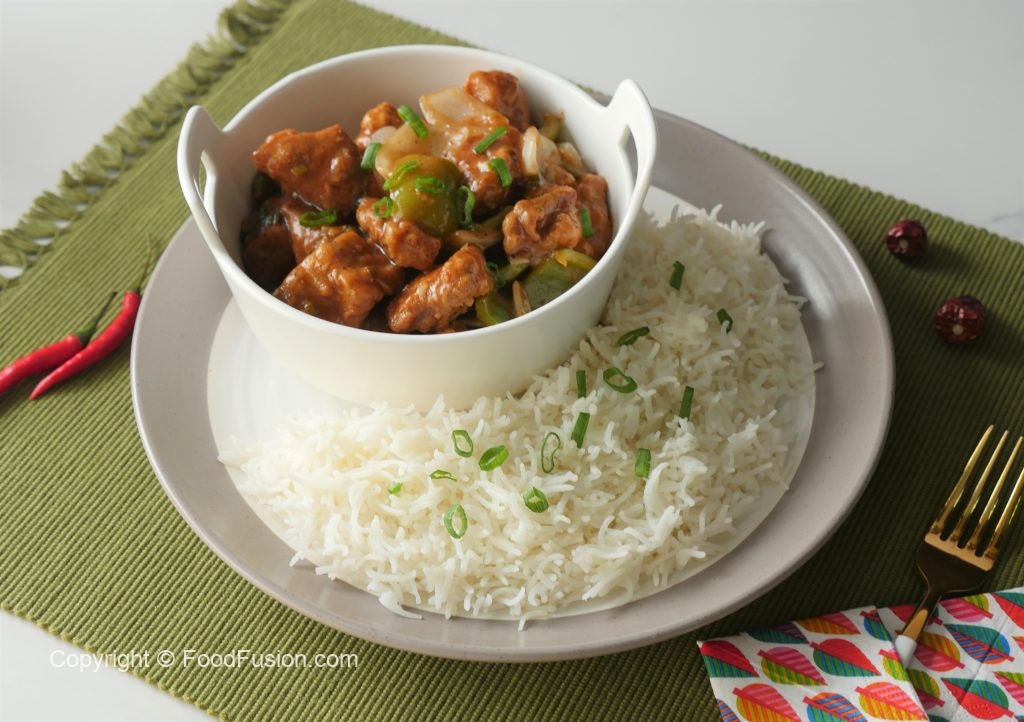Garnish with green onion leaves and serve with rice.