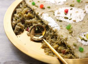 Badam, pista or kishmish daal kar light golden honay tak fry karlen.