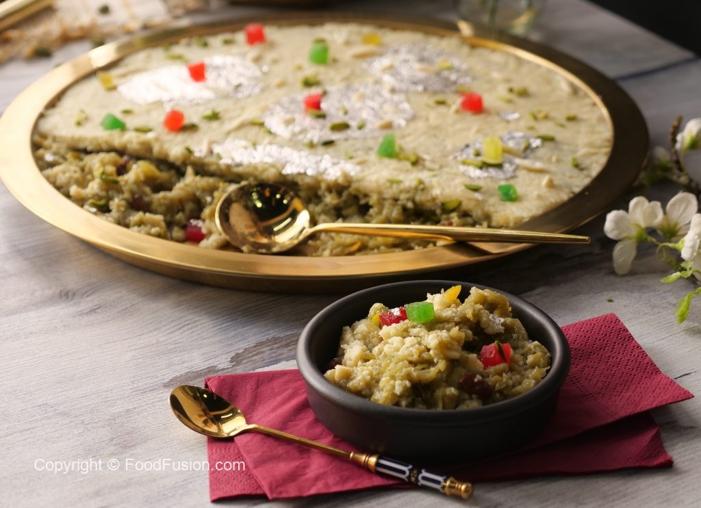 Ab is par naram kia hua khoya daal kar phela len. Chandi ka warq, tutti frutti or pista se garnish kar k serve karen!