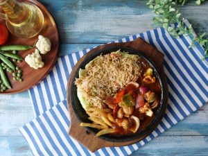 -In a bowl, add chicken mince, paprika powder, garlic powder, pink salt, black pepper crushed, cornflour, lemon juice, extra virgin olive oil & mix well.