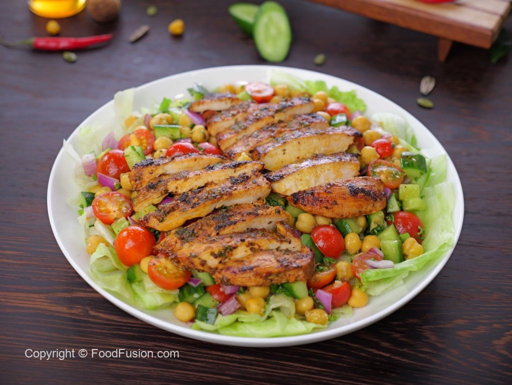 Healthy Protein Salad – Lemon Herb Grilled Chicken & Chickpea Salad