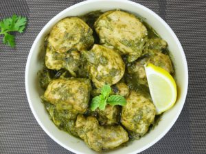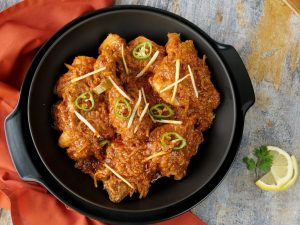 Sprinkle prepared spice mix and give a coal smoke for 3 minutes & serve.