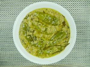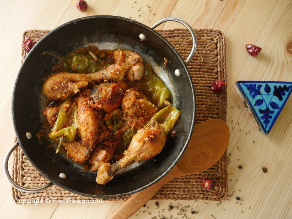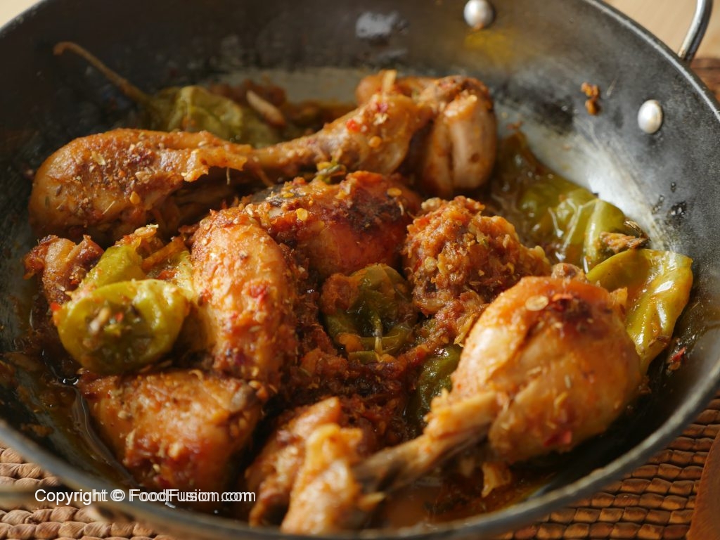 Hari mirchon ko knife ki madad sa slit karein aur karhai mein dal ker 5 minutes kliya fry ker lein.