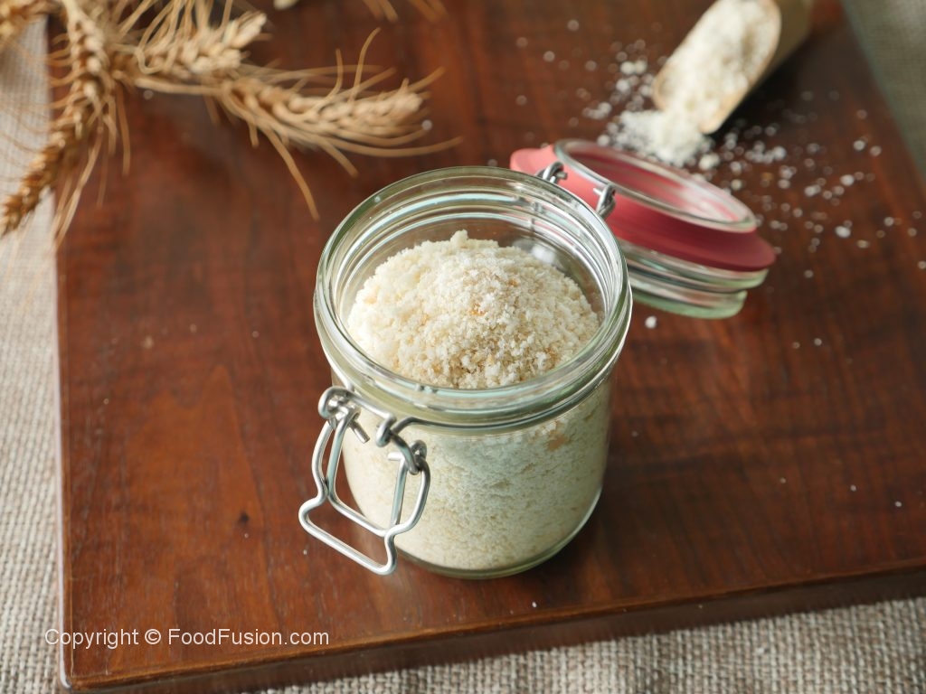 Chopper mein toasted bread slices dal dein aur crumbled hunay tak ache tarhan chop karein phir strainer ki madad sa strain ker lein.