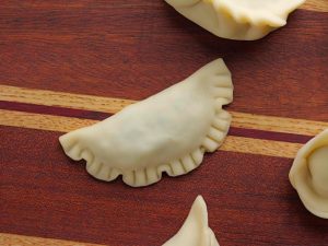 -Make a set of 10 dumpling wraps, place parchment paper in between, place in an air-tight container with a paper towel on top (it will help absorb moisture).