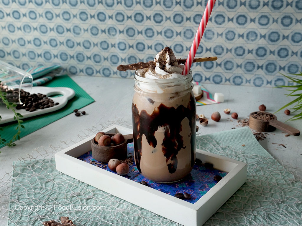 Blender jug mein doodh,Instant coffee,cheeni,nutella hazelnut spread aur cream dal ker ache tarhan blend ker lein.