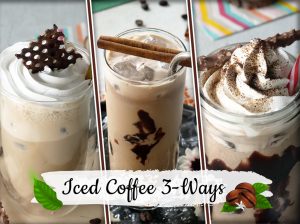 In a serving glass,add ice cubes,prepared tres leches iced coffee,top with whipped cream and garnish with chocolate & serve!