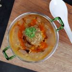 -In a saucepan add water, ½ Cup (approx. 100g) instant vegetable noodle soup mix & whisk well.