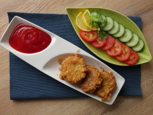 Grease hands with oil,take a mixture and make kababs of equal sizes (makes 18).
