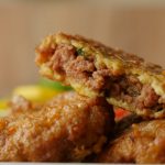 Kababs ko breadcrumbs mein coat karein phir pheetay hoye anday mein dip ker lein.