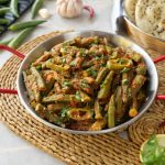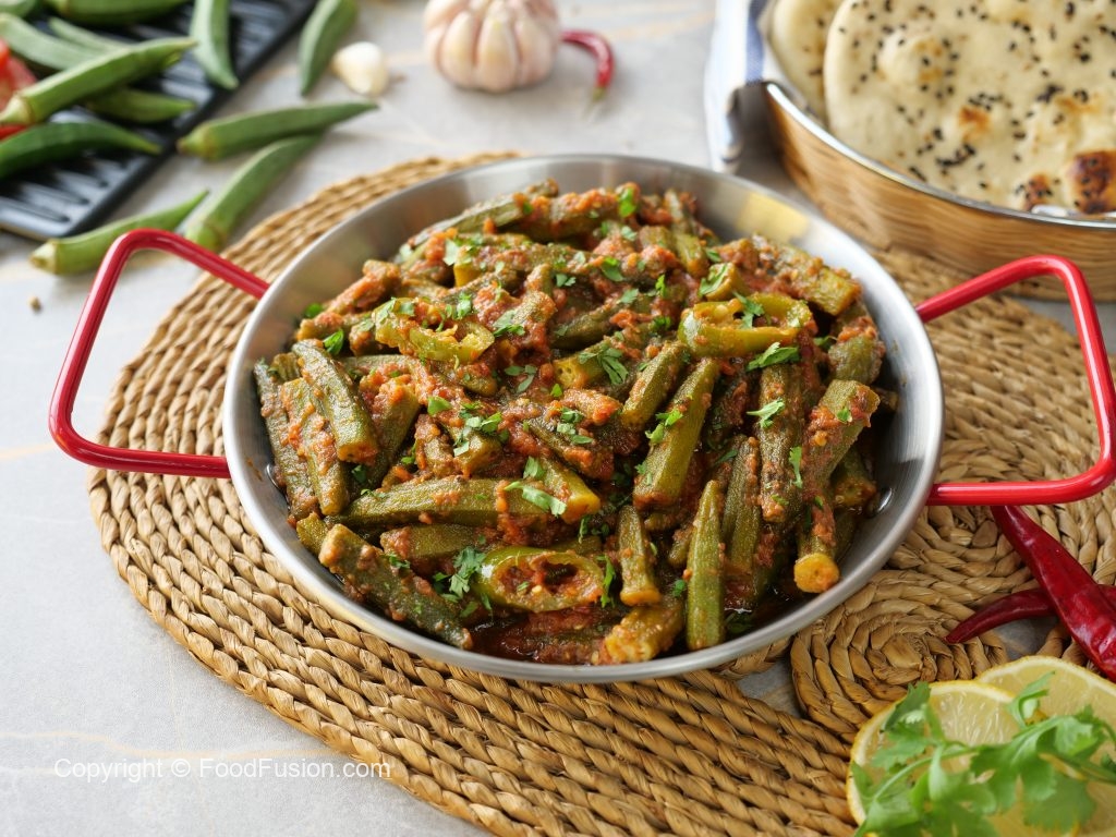 In a wok,add cooking oil & fry okra on high flame for 5-6 minutes then takeout & set aside.