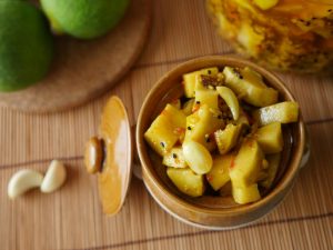 Bowl mein lehsan,namak,saunf,meethi dana aur haldee powder dal ker ache tarhan mix ker lein aur 3 hours kliya chor dein.