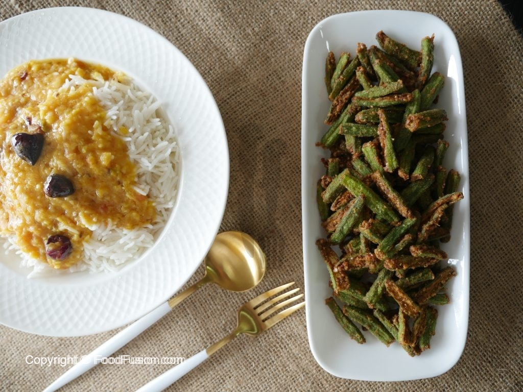 In bowl,add okra,red chili powder,garam masala powder,turmeric powder,salt and coriander powder, mix well and let it rest for 10 minutes.