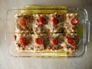 Cover with aluminum foil and bake in preheated oven at 180 C for 15-20 minutes or until cheese melts.