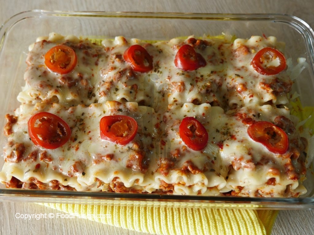 In bowl,add water and boiled lasagna sheets and leave for 5 minutes then strain & set aside.