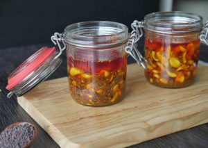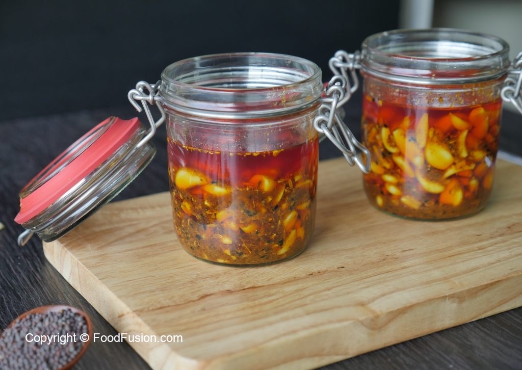 In dry & clean jar,garlic achar,cover tightly and keep in sunlight for 2 days.