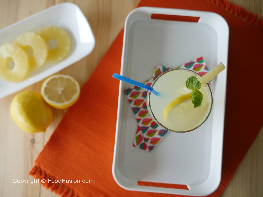 In blender,add pineapple slices,sugar,pineapple juice,lemon juice,water and blend until well combined.