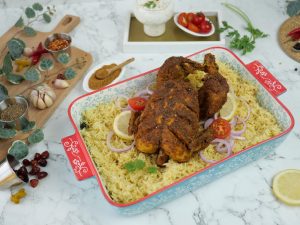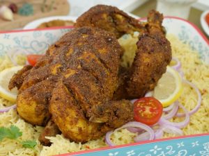 -Lahori chargha ko chawal aur salad ka saath serve karein!