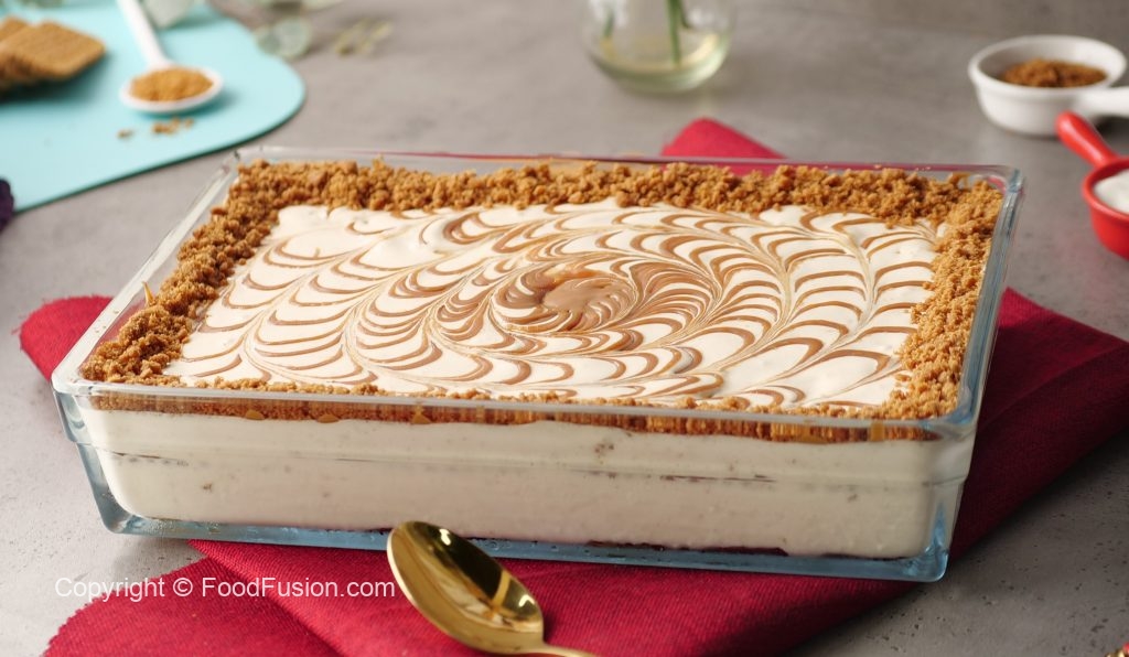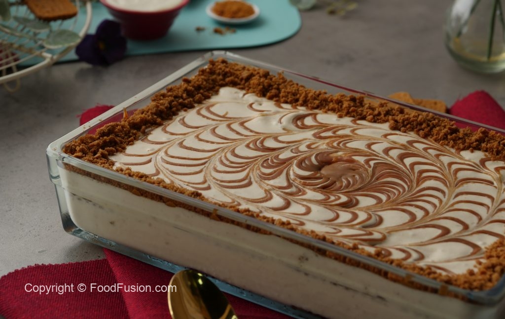 -Garnish the top layer with lotus spread & lotus biscuit crumbs. Refrigerate for 15 minutes & serve!