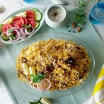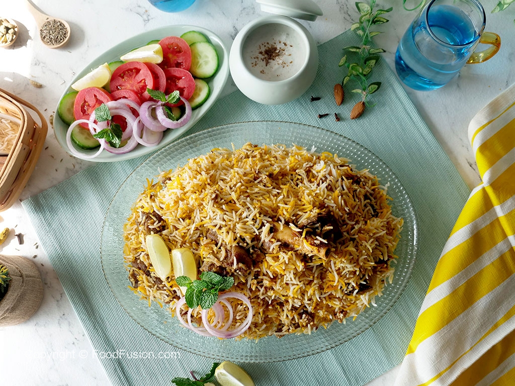 Add reserved mutton,fried onion,remaining spice mix,boiled rice and prepared saffron milk,cover and simmer on low flame for 8-10 minutes & serve!